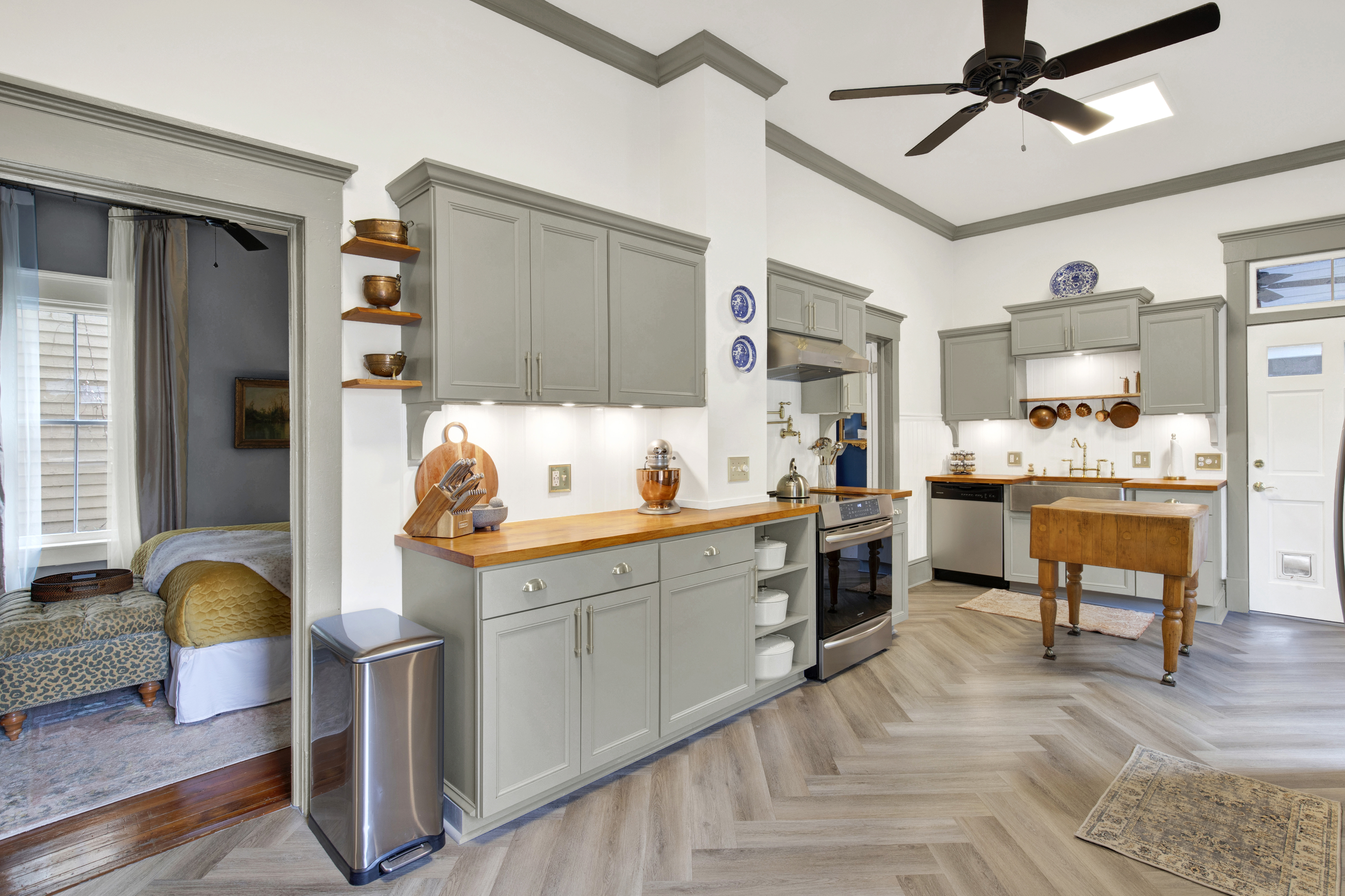 Welcome to The Majestic Fern - a richly appointed residence within a restored 1920s Victorian duplex. Curated design and timeless architectural details create an elevated retreat in the heart of the Thomas Streetcar Historic District.